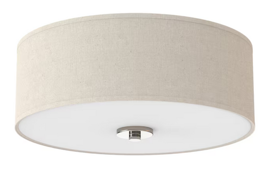 13-in Brushed Nickel Indoor 2 -Light Flush Mount Light with Fabric Shade