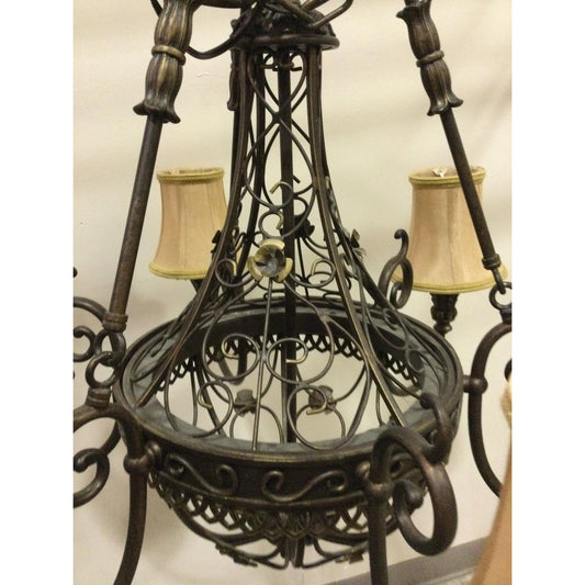 6-Light Antique Bronze Chandelier with Fabric Shades
