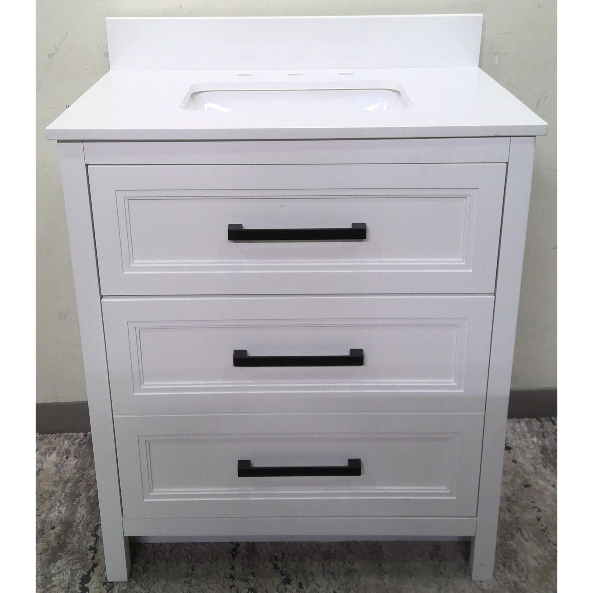 30" White Vanity with White Engineered Stone Top }